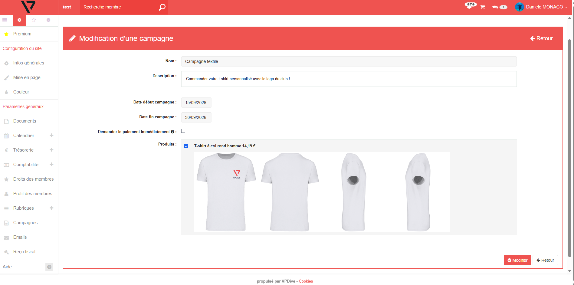 Définissez son prix de vente affiché à vos membres (cliquez sur la roue cranté).
