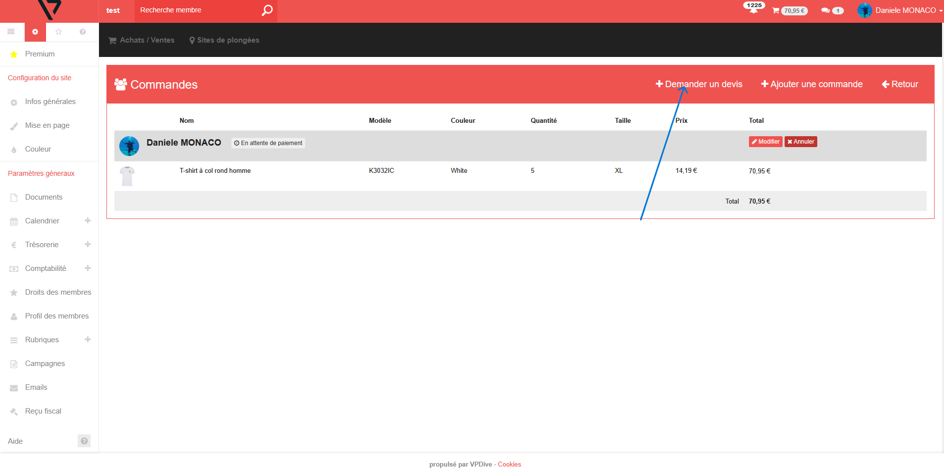 Rendez-vous sur votre espace VPDive et cliquez sur l’icône de la roue crantée, puis sur Print > Produit. Avant de commencer, vous pouvez consulter le catalogue des vêtements disponibles. Même si toutes les références ne sont pas encore en ligne, elles seront ajoutées progressivement selon vos demandes.